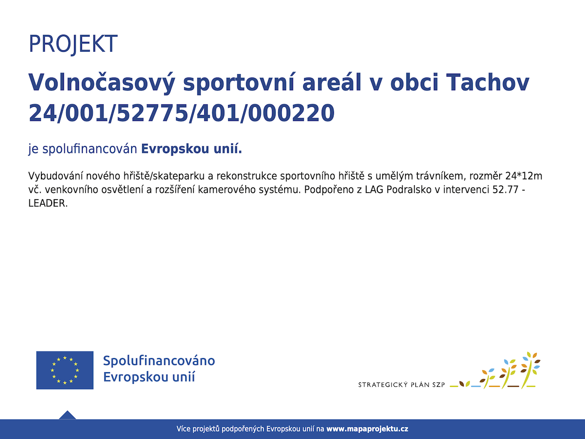 Projekt s názvem: Volnočasový sportovní areál v obci Tachov